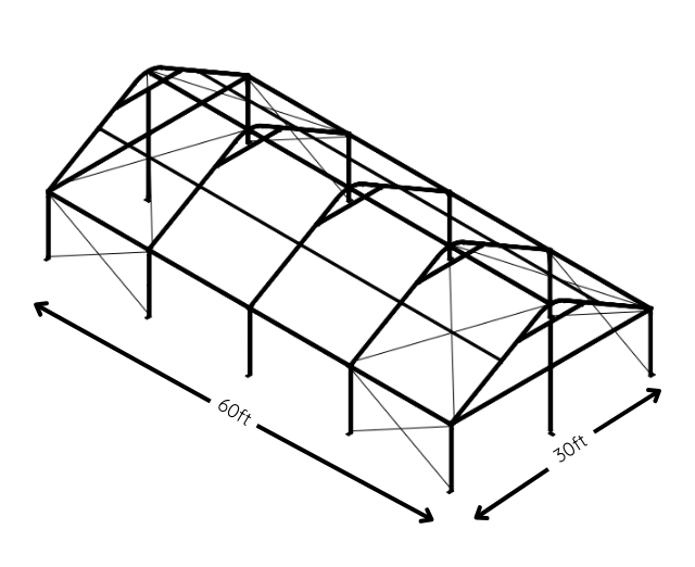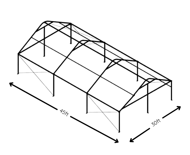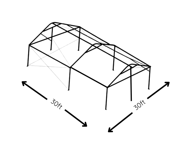The Select Frame Tent is most often installed in a 30-foot wide layout, which provides a more open, comfortable feel than narrower frame tents. Below are the most common sizes we install, along with typical guest counts to help you find a good starting point.